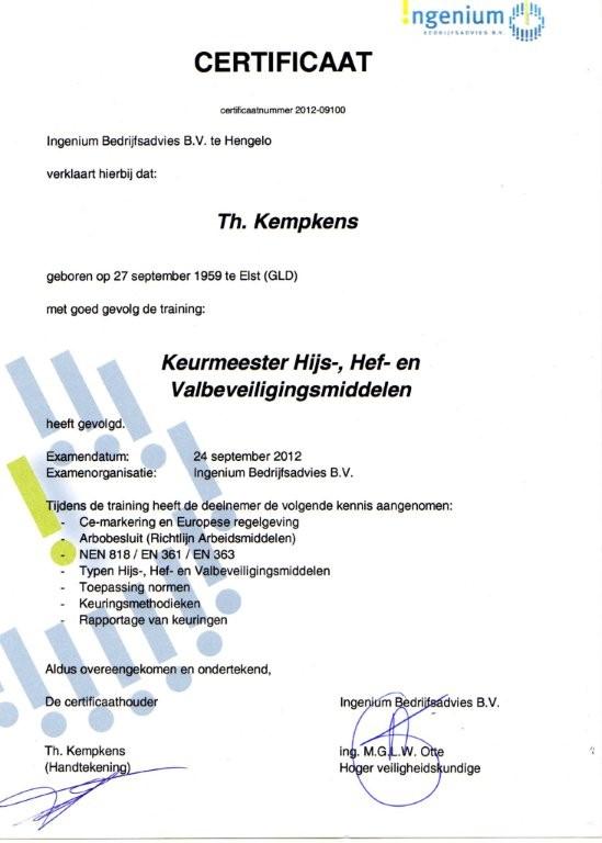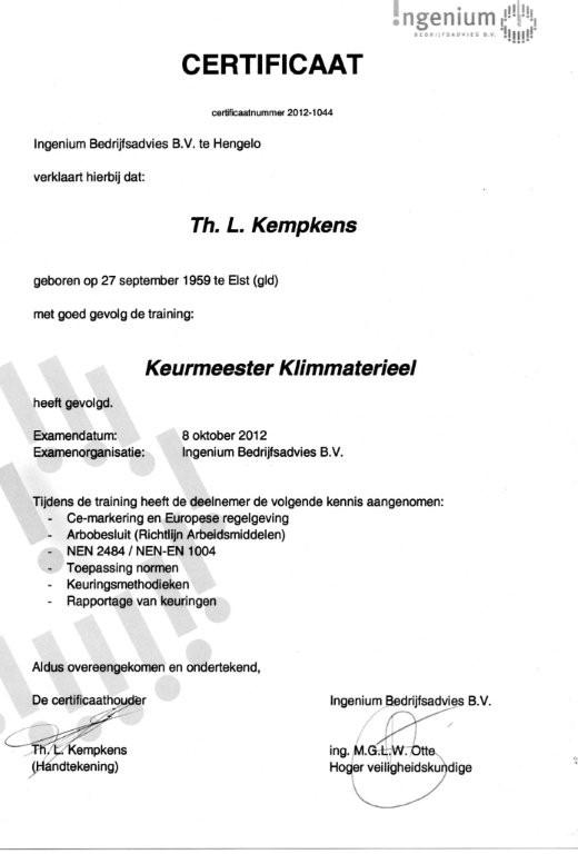 Certificaat keurmeester hijs- en hef- en valbeveiligingsmiddelen